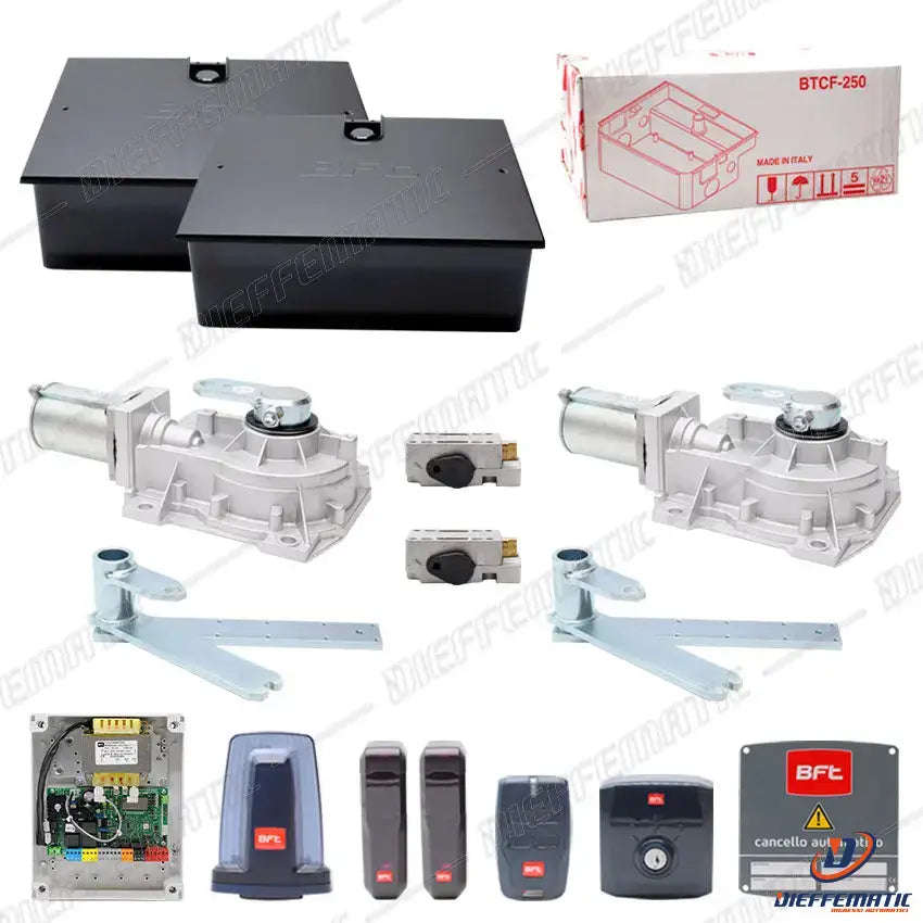 Complete kit for the automation of swing gates with 24V underground electromechanical operators.