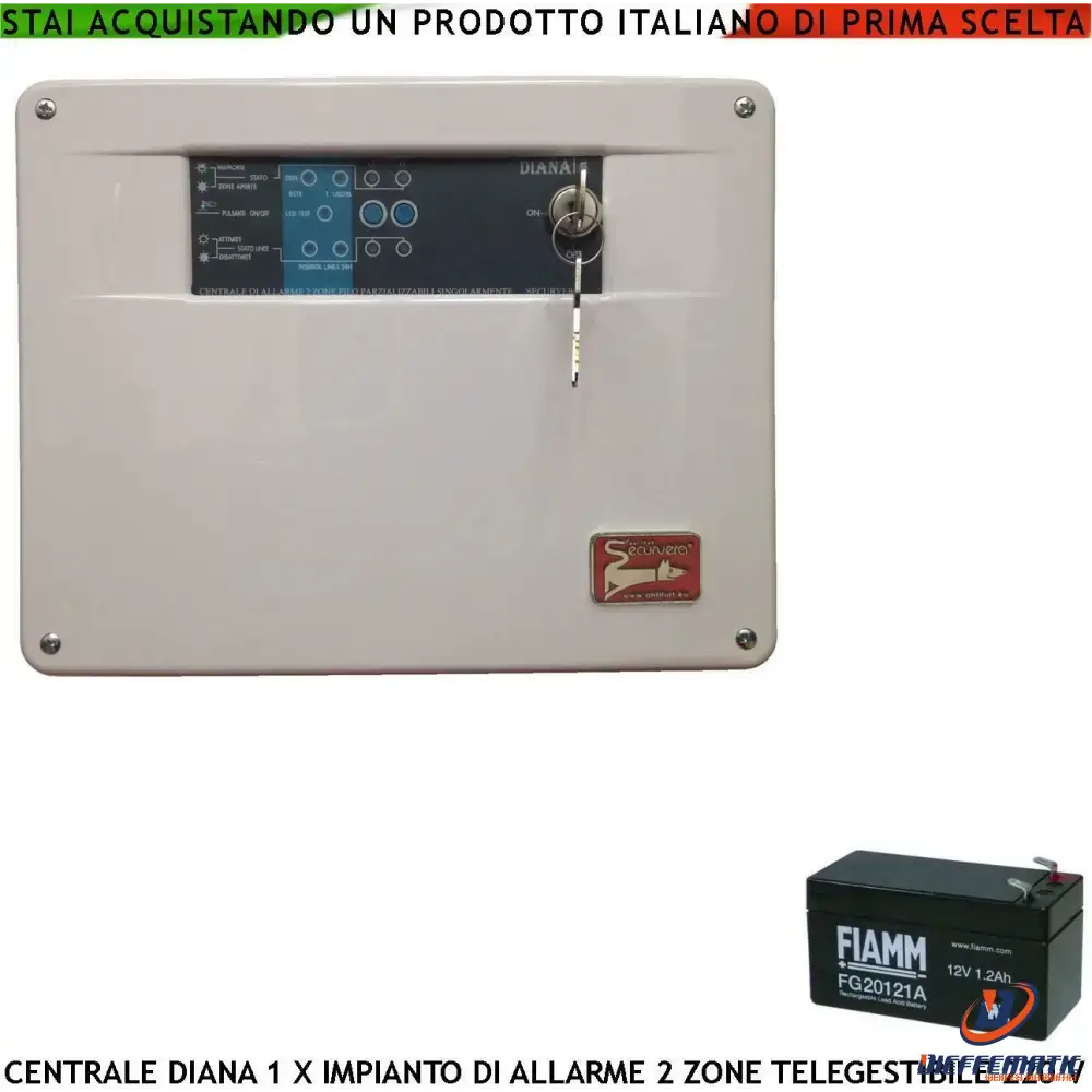 Diana 2 Zone Alarm Central Battery 12 V 1.2 Ah for Burglar Alarm System Wired Mechanical Key Manages Motion and Burglary Sensors Remote Control or Telemanagement Input Command Output for Sirens and Telephone Dialer - SH-D1FCDB2ZFA