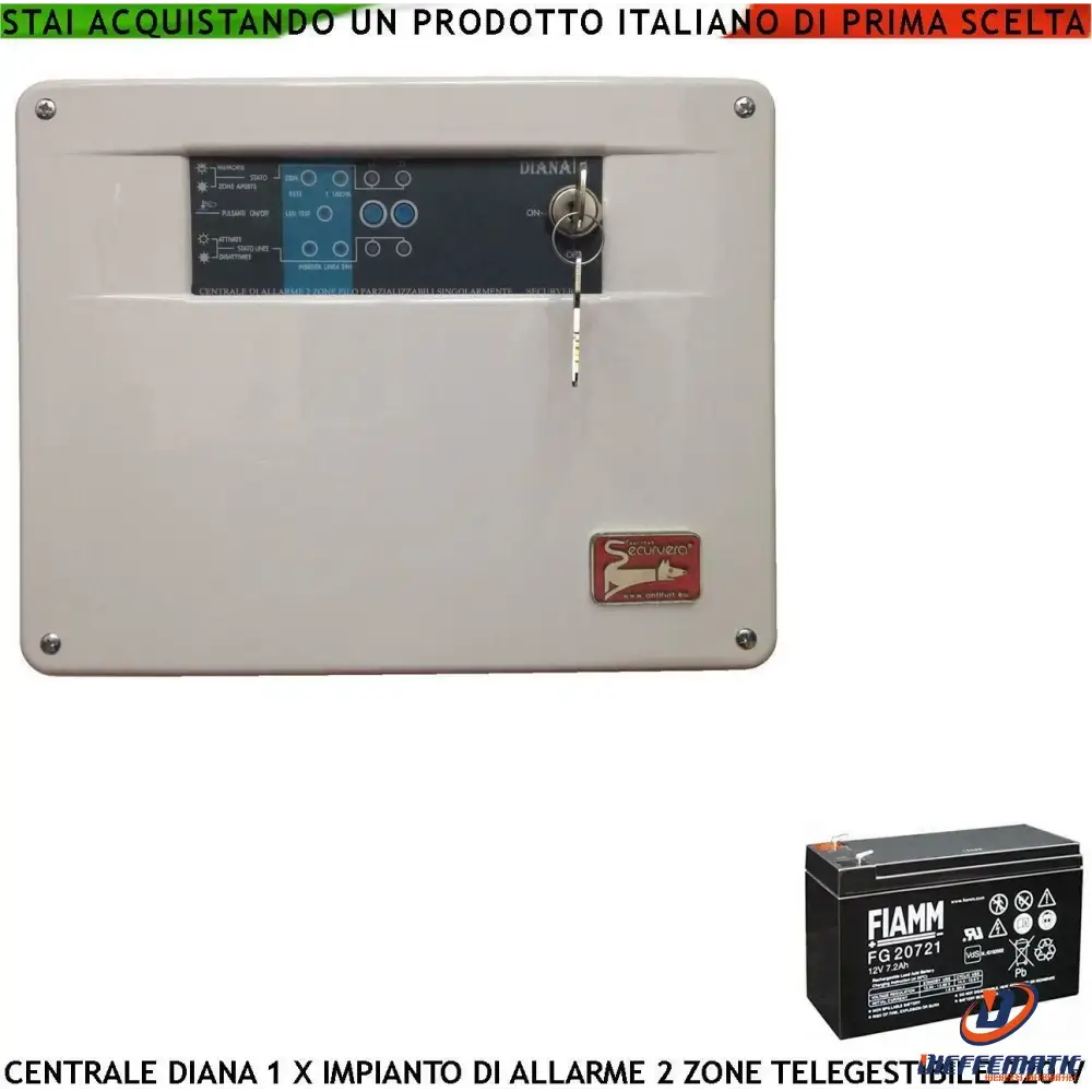 Diana 2 Zones Alarm Central Battery 12 V 7.2 Ah for Burglar Alarm System Corded Mechanical Key Manages Motion and Burglary Sensors Remote Control or Remote Management Input Command Output for Sirens and Telephone Dialer - SH-D1FCDB7ZFA