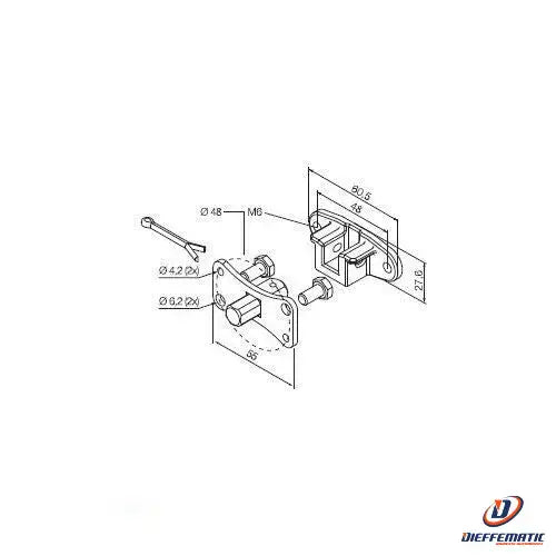 10 mm square pin + saddle bracket, with M6 holes at 48 mm center distance