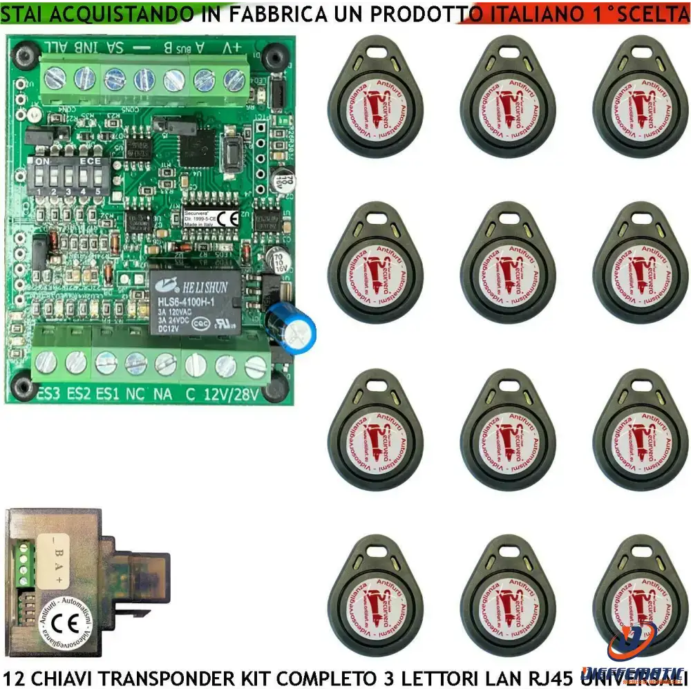 Electronic Proximity Key Kit Universal Reader LAN RJ45 Any Brand 12 TAG Keys Relay C.NC.NA 1AX24V Impulsive or Bistable Power Supply 12/24 Vac - SV-KPDULUDCPD