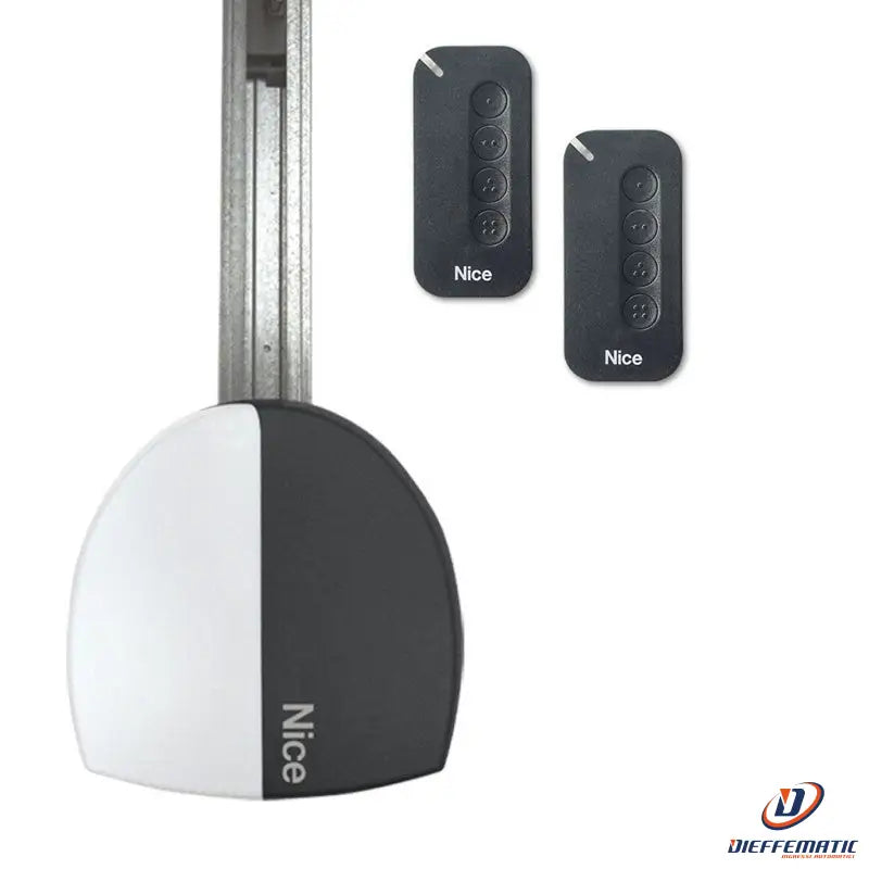 Kit bidirezionale per porte sezionali fino a 10,5 mq e basculanti fino a 11,8 mq, con tecnologia di collegamento Nice BlueBUS completo di 1 guida premontata da 3 metri