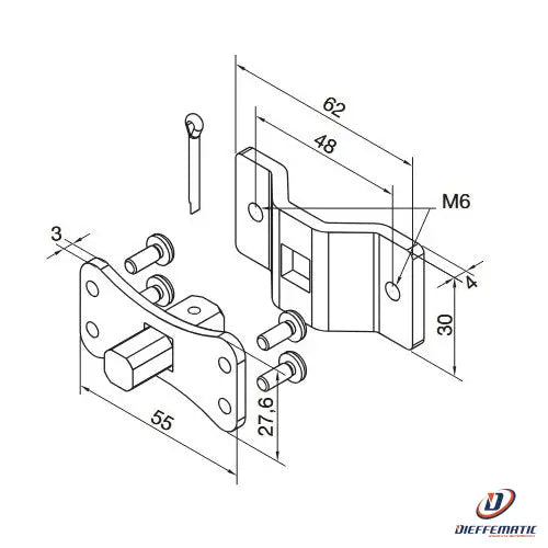Supporto perno quadro 10 mm + staffa con fori M6