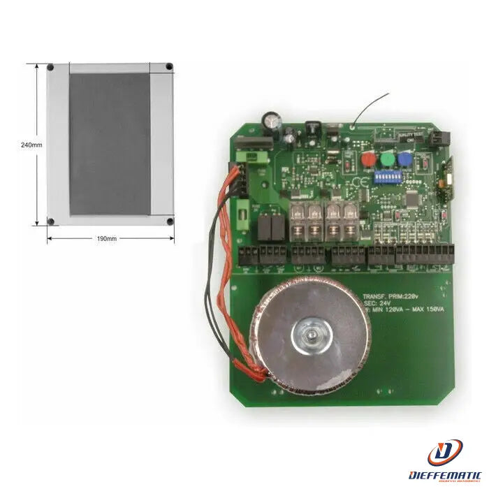 La centralita universal con autoaprendizaje ha sido diseñada para la automatización del acceso a 1 o 2 motores de 24V y está dotada de un innovador procedimiento de autoaprendizaje para una rápida instalación y de cuatro trimmers para el ajuste fino de los principales parámetros; fuerza, tiempo de pausa, sensibilidad de control de obstáculos y retardo de cierre entre los dos motores.