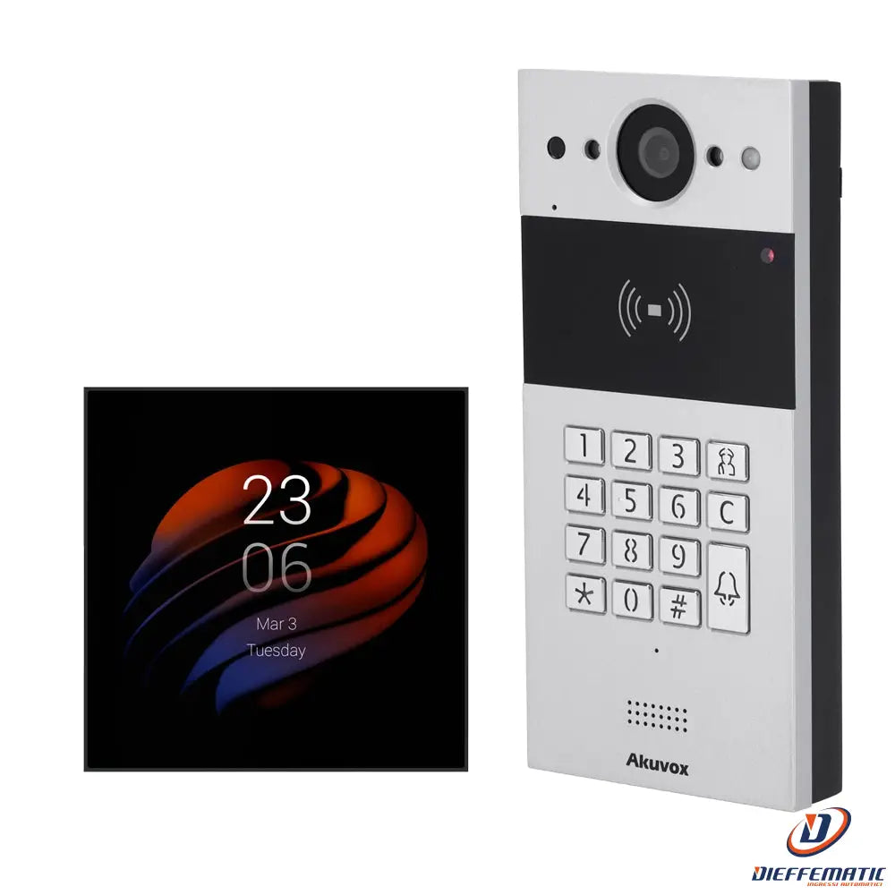 • Kit formato da: AK-R20K videocitofono da esterno per montaggio a parete con telecamera 2 Mpx HD e AK-PS51-POE-UE monitor da interno WiFi con schermo TFT LCD da 4" Android