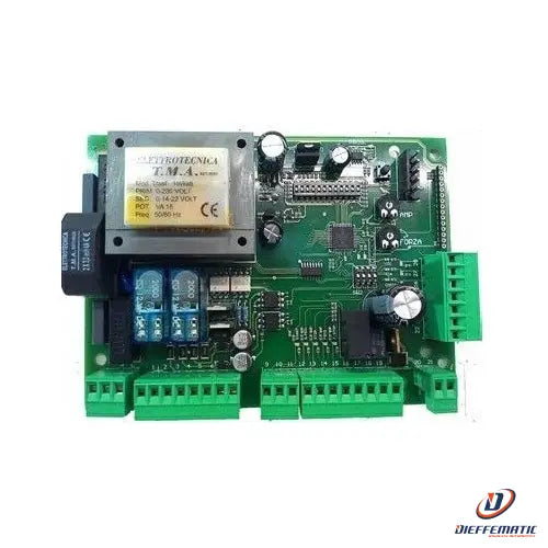 Centrale de commande UNIVERSELLE 230Vac pour 1 ou 2 moteurs. A les fonctions de copropriété, pas à pas, fermeture automatique, passage piéton, coup de bélier, ralentissements, démarrage progressif, photo ouverture, photo fermeture, réglages du temps de Asa, temps de pause, temps de retard des portes en ouverture et fermeture, puissance moteur et réglages de résistance, SEUILS AMPÉROMÉTRIQUES AVEC ANTI-ÉCRASEMENT.