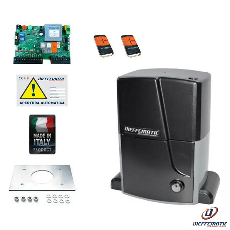 N°1Motoréducteur électromécanique 2000 kg (avec équipement électronique intégré) Alimentation 220V avec déverrouillage à clé, Dimensions H257XL290XP135 mm.Vitesse 12 m/min (normes UNI 8612),Poids 17 kg
