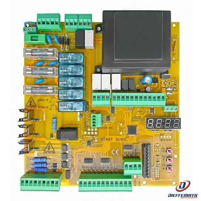 Centrale de commande avec contrôle de phase, pour 1 moteur triphasé/monophasé 230/400V jusqu'à 2CV pour portes pliantes rapides et portails coulissants. La centrale START-S19 effectue un test de phase qui donne les résultats suivants : connexion monophasée/connexion triphasée RST en séquence inversée (la centrale inversera automatiquement l'OUVERTURE et la FERMETURE du moteur) connexion triphasée RST dans le Nice ordre. Connexion encodeur. Entrées : départ-horloge, photo en ch, fil photo en ch, sécurité anti-groupage, fin de course ap et ch, contrôle piéton, compas, stop, interrupteur de ralentissement en ap et ch. Bord de sécurité à contact NC ou 8K2. La gestion du freinage se fait en présence/absence de 230V. Logique de fonctionnement et de programmation Gibidi START-S12. Carte uniquement, boîte exclue.