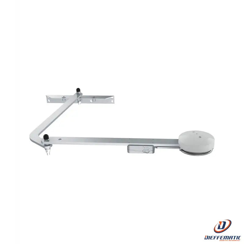 Braccio articolato anticesoiamento in acciaio zincato per motoriduttore DU.350FX, con sistema di sblocco a leva, lunghezza braccio 2 x 365mm, staffa anteriore da fissare su anta L406mm