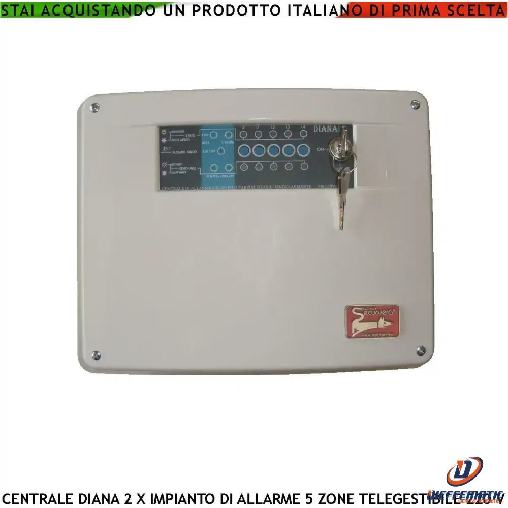 Diana 5 Zone Centrale Allarme per Impianto Antifurto Chiave Meccanica Gestisce Sensori di Movimento e di Scasso Ingresso per chiave Remota o Telegestione Uscita di Comando per Sirene e Combinatore Telefonico Ricambio Impianto Filo - SH-D2FCFD2ZFA