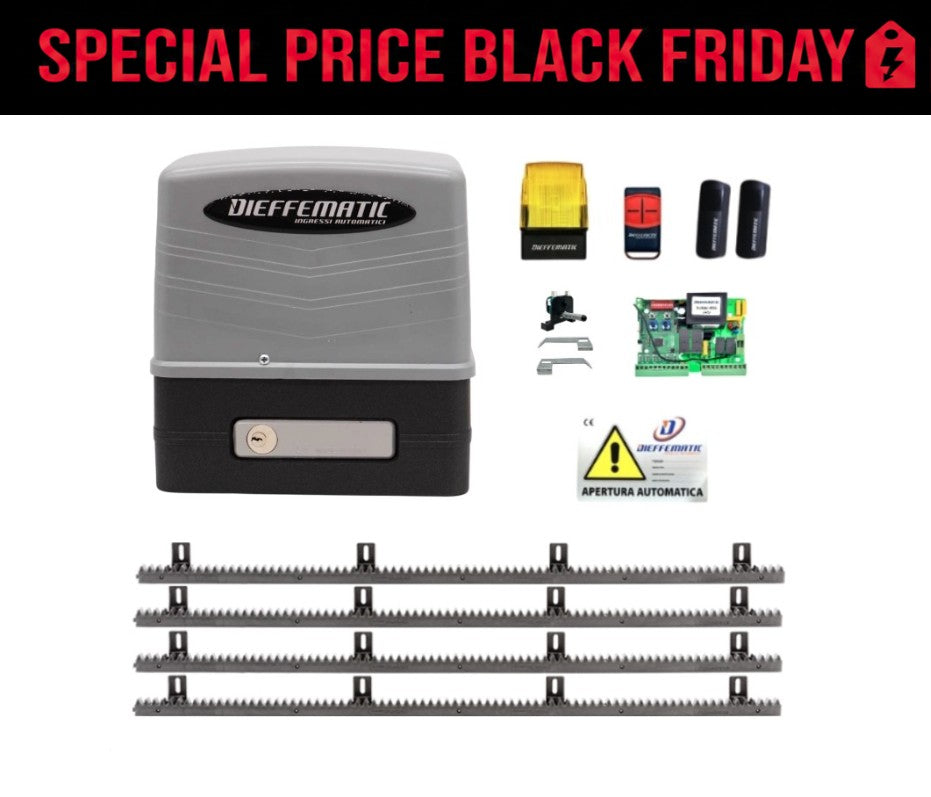 - n° 1 Centrale di comando posizionata nel carter motore, con trimmer di regolazione della forza motore e rilevatore di ostacoli, rallentamento in apertura e chiusura, 4 Logiche di funzionamento: passo-passo, semiautomatica 1 e 2, automatica condominiale. Ingresso pedonale, Luce di cortesia, Protezioni contro sovratensioni, Ingresso per Fotocellule e coste di sicurezza