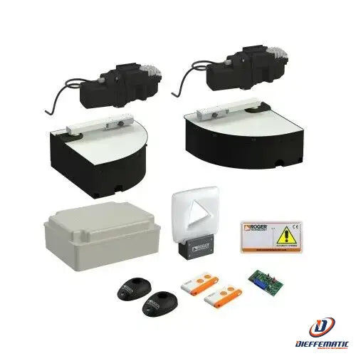 SET di 2 motoriduttori elettromeccanici 230V AC irreversibili interrati ideali per cancelli a battente con anta fino a 5 m completo di casse di fondazione in acciaio con trattamento in cataforesi con coperchio zincato a freddo e sistema di sblocco, con kit elettronica