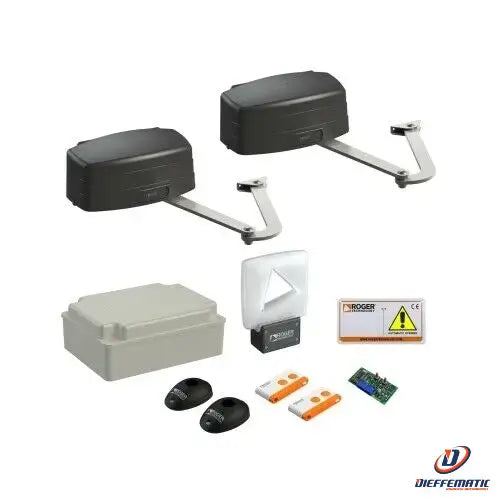 SET di 2 motoriduttori elettromeccanici 230V AC irreversibili a braccio articolato ideali per cancelli a battente con anta fino a 3,5 m con finecorsa meccanico completo di bracci corti versione standard con kit elettronica