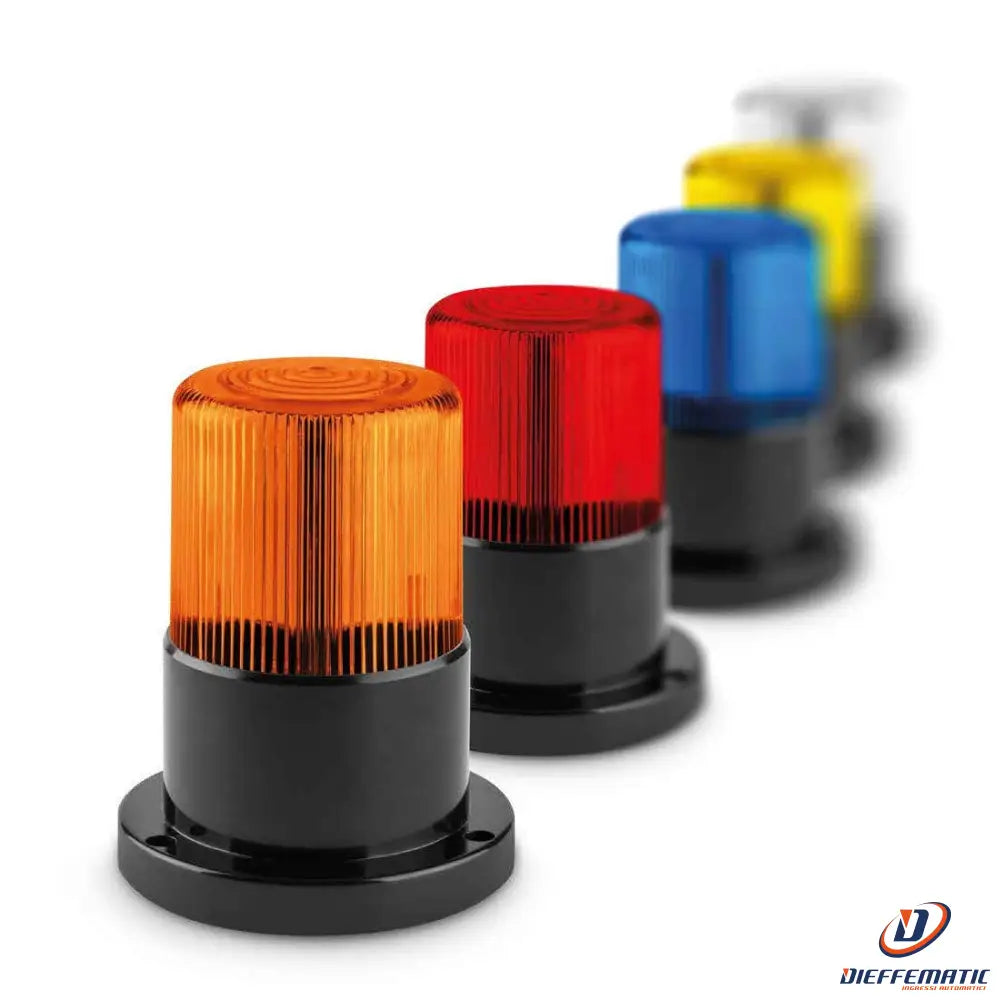 Lampeggiante a LED con lampeggi regolabili da 50 a 100 al minuto, alimentazione 10-30 Vcc. Base in ABS e lenti in VEDRIL, circuito elettronico protetto in resina e contro l'inversione di polarità. Grado di protezione IP 55.