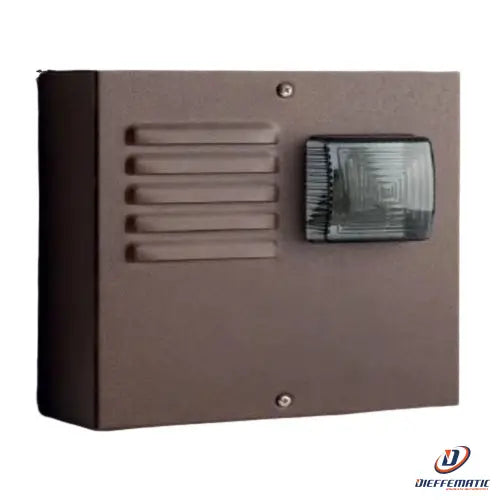 Sirena outdoor in metallo verniciato dalle linee rigorose, resistente agli agenti atmosferici.
