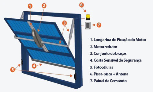 * Componentes principais de um sistema de automação para portas de garagens basculantes *