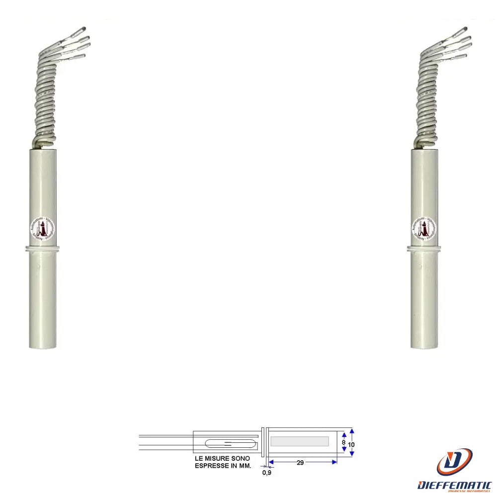 ST-415 Contatto magnetico Cilindrico a forma Cilindrica a Chiodo in ABS da Incasso. Contatti in ampolla di vetro sottovuoto NC e Tamper NC. Collegamento con 4 fili, lunghezza superiore a 10 Cm. Sensibilità Campo magnetico 8 mm. Composto da 2 pezzi aventi la stessa forma. Il fissaggio, avviene per incasso forzato su apposito foro. La parte con i fili contiene il contatto reed, l'avvicinamento del magnete provoca la chiusura del contatto. L'altro contiene un magnete permanente. Adatto per controllare l'apertura di porte e infissi (non ferrosi), installazione a scomparsa. Conforme 1° livello CEI 79-2. Caratteristiche e specifiche generali: Temperatura di funzionamento da -25 a +70°. Protezione IP 65. Tensione max 100 Vcc. Potenza massima 10 W. Dimensioni installato L58XD8XT10 mm. Peso 9 gr. Prodotto assemblato e selezionato nello stabilimento della Securvera Roma. Garantito a norma di Legge 24 mesi contro difetti e vizi di fabbrica. Risponde alle direttive Europee: EN50131-2-6 CEE 89/336 + 92/31 +93/68 D.L 04/12/1992 N 476. ERP 2009/125/CE; "RoHS" 2015/863/UE; R&TTE 99/05/EC. Compatibilità Elettromagnetica 2014/30/UE; Bassa Tensione 2014/35/UE e successive modifiche, in continuo aggiornamento