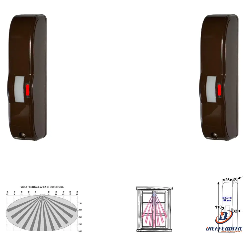 Evita Furto Doppia Tecnologia Tenda Marrone 2 Pezzi Infrarosso e Microonda Portata 5 MT Vano Finestra Interno Corridoio Scala Rileva Intrusi Ladri Invia Allarme Alim. 12 V Assorb. 10 mA Cover ABS IP44