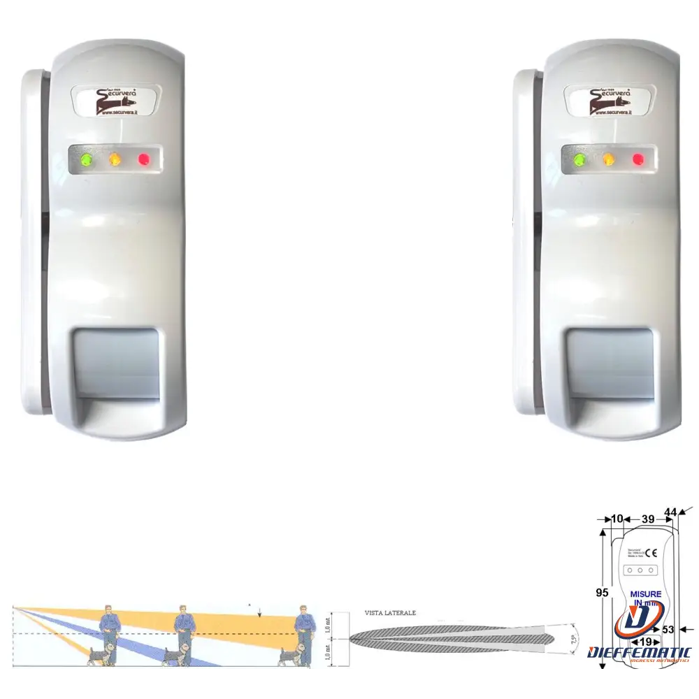 SV-DTF Doppia tecnologia da interno ed esterno a Tenda. Portata: 12 metri Interno, 8 metri esterno. Doppio sensore piroelettrico, che generano unico fascio infrarosso. Microonda con guida d'onta a Tenda. I due sensori sono sincronizzati su un apertura di 7,5°, Regolazione della sensibilità per ogni singolo sensore. Uscite separate a relè: Allarme, antimascheramento e tamper. Funzioni: infrarosso, microonda, allarme, segnalate da singoli led disattivabili. Adatta per la rilevazione di Intrusi e la protezione degli infissi tra persiana e finestra, balconi protetti da sottotetti, evitare l'installazione con il sole diretto antimeridiano e pomeridiano. Installazione a parete altezza 2,10 metri dal pavimento. Contenitore ABS Bianco. Protezione IP31. Dimensioni H116XL49XP53 mm. Peso 90 gr. Prodotto selezionato nello stabilimento della Securvera Roma. Garantito a norma di Legge contro difetti e vizi di fabbrica. Risponde alle direttive Europee: EMC 2004/108/CE EN 50130-4: 1995 + A1: 1998 +A2: 2003 EN55022: 2006 ce0700 Classe II CEE89/336 e 93/686 D.L. 04/12/1992 n. 47