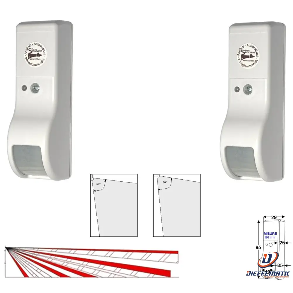 Infrarosso Dual Pir Tenda Esterno Protetto Due Sensori Che Rilevano Intruso Invia Allarme Portata 8 MT 60° Vert. 7° Orizont. Aliment. 12 V Assorbim. 10 mA Antifurto Vano Persiana Cover Bianco ABS IP31