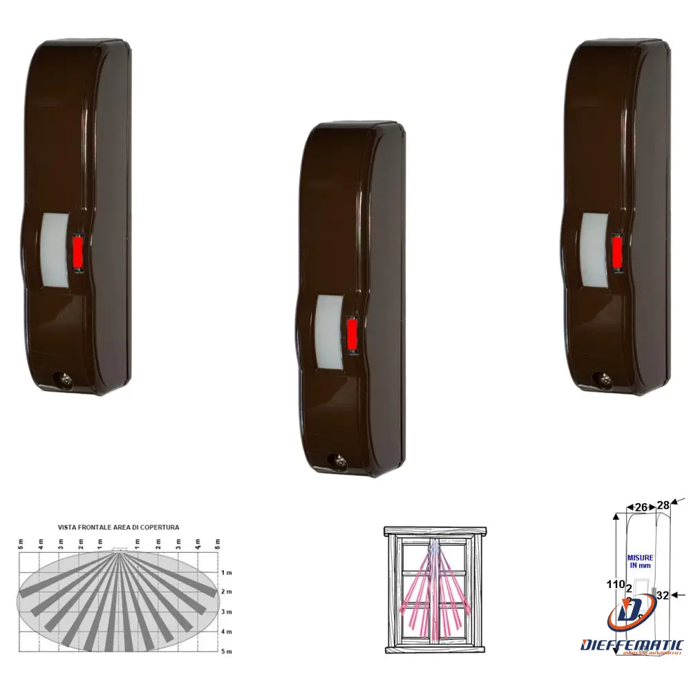Rilevatore di Movimento Tre Doppia Tecnologia a Tenda Marrone Infrarosso e Microonda Portata 5 MT Vano Finestra Interno Balcone Rileva Intrusi Invia Allarme Aliment. 12 V Assor. 10 mA Cover ABS IP44