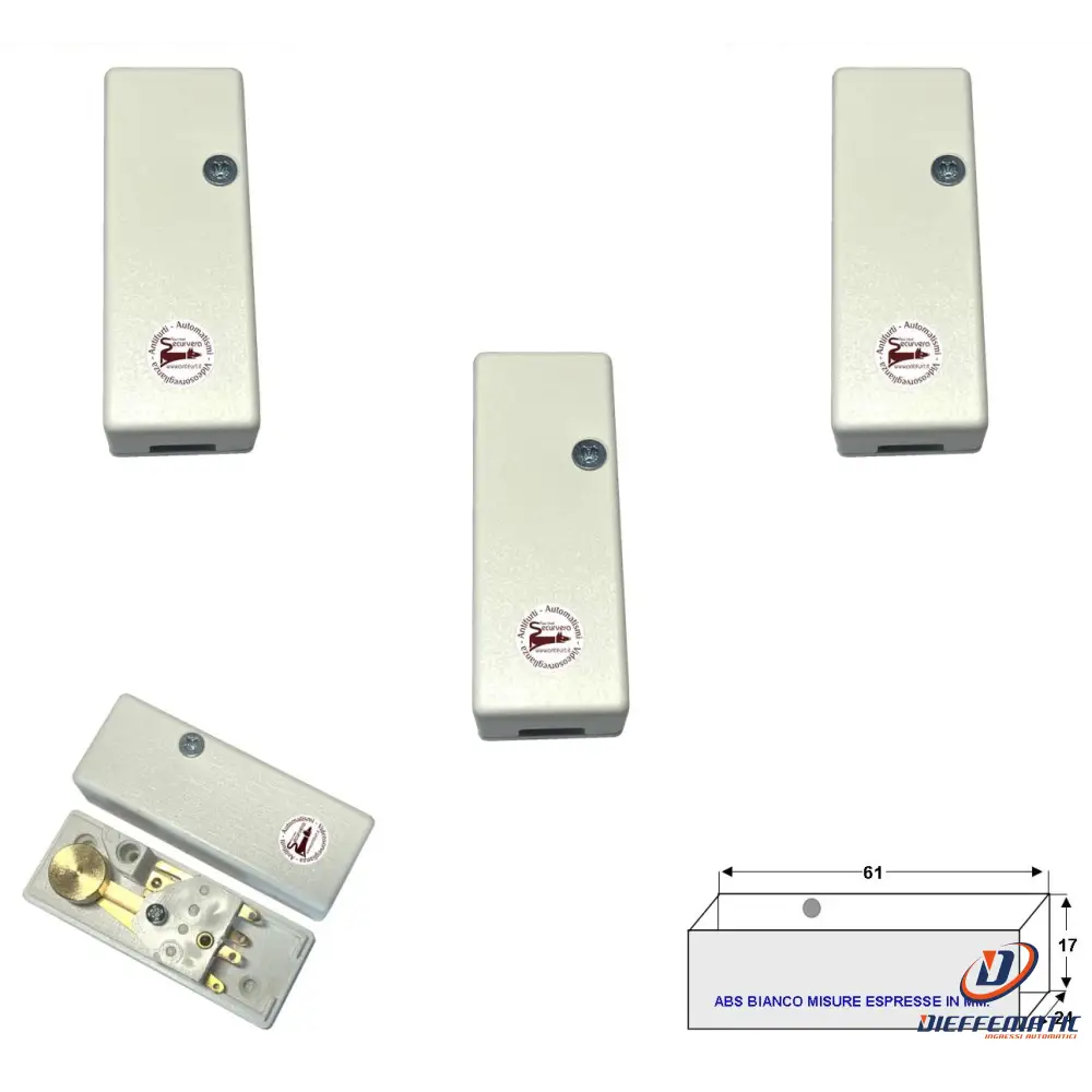 SV-VAB Vibratore autoadesivo contatti dorati NC, montati su lamelle di bronzo fosforoso. Sensibilità regolabile meccanicamente. Corrente massima 500 mA. a 30 V. Potenza massima 10 W. Carchi resistivi. Protetto contro l'apertura (tamper). Connessione a filo, Contatto NC impulsivo; impulsi veloci irregolari. Temperatura di funzionamento da -10 + 50°. Protezione IP 30. Conforme 1° livello CEI 79-2. Consigliata la scheda di analisi SS-TWN (optional). Contenitore in ABS Bianco forma parallelepipedo con adesivo per il fissaggio. Adatto per proteggere dallo scasso e da colpi ripetitivi: infissi, porte, vetrate. Dimensioni L61XL23XP17 mm. Peso 19 gr. Prodotto assemblato selezionato nello stabilimento della Securvera Roma. Garantito a norma di Legge 24 mesi contro difetti e vizi di fabbrica. Risponde a tutti gli standard delle direttive Europee: UNI EN 12453-EN 12445 CEE 89/336 + 93/68 D.L. 04/12/1992 N. 476. ETSI EN 301 489-3 V1.4.1 (08-2002), EN 60730-1: 2003. Apparecchiature Radio 2014/53/UE. Compatibilità Elettromagnetica 2014/30/UE