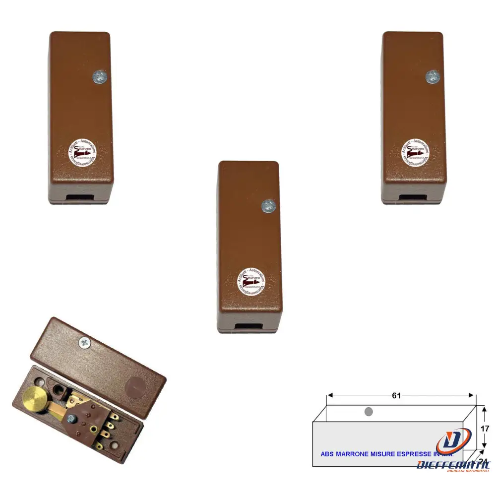 Sensore di Scasso Rileva le Vibrazioni Continue 3 Pezzi Via Filo Per Antifurto Di Inferriate Porte Infissi Vetrate Martelletto Regolabile Segnale Allarme NC Tamper Contenitore Adesivo ABS Marrone IP30