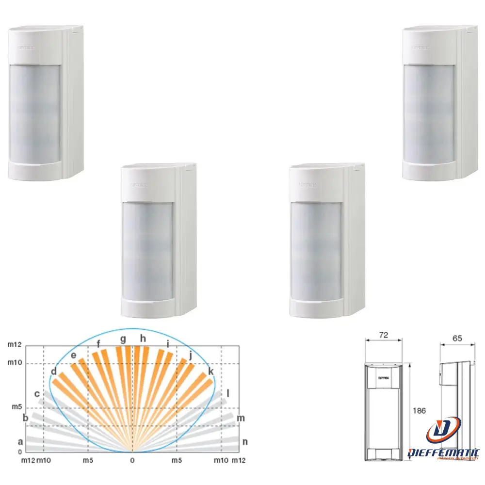 Infrarosso dual PIR VXI 4 Rilevatori di Movimento per Allarme Grandangolo Con Filtri a Tenda Portata 12 MT Regolabile Via Filo Relè Protezione Esterna Contro Intrusi Alim. 12 V Assor. 20 mA ABS IP55