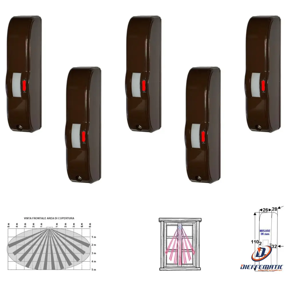 Sensori di Movimento Marrone 5 Doppia Tecnologia Tenda Portata 5 MT Antifurto Rileva Intrusi Vano Finestra Esterno Protetto Ingresso Interno Invia Allarme Aliment. 12 V Assorb. 10 mA Cover ABS IP44