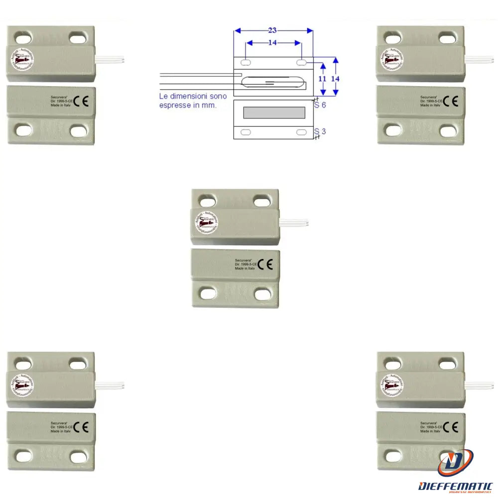 Sensore Magnetico NC Micro 5 Pezzi Bianchi Per Allarme Infissi Tensione Max 100 V Corrente 1 A Contenitori Con Fori di Fissaggio Reed in Ampolla Sottovuoto Sensibilità Magnetica 10 mm IP65 4 Fili