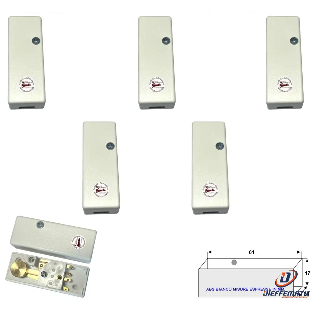 Sensori Scasso Rilevano le Vibrazioni Continue 5 Pezzi Via Filo Antifurto Per Inferriate Porte Vetrate Regolazione Martelletto Oscillante Contatto Allarme NC Tamper Contenitore Adesivo ABS Bianco IP30