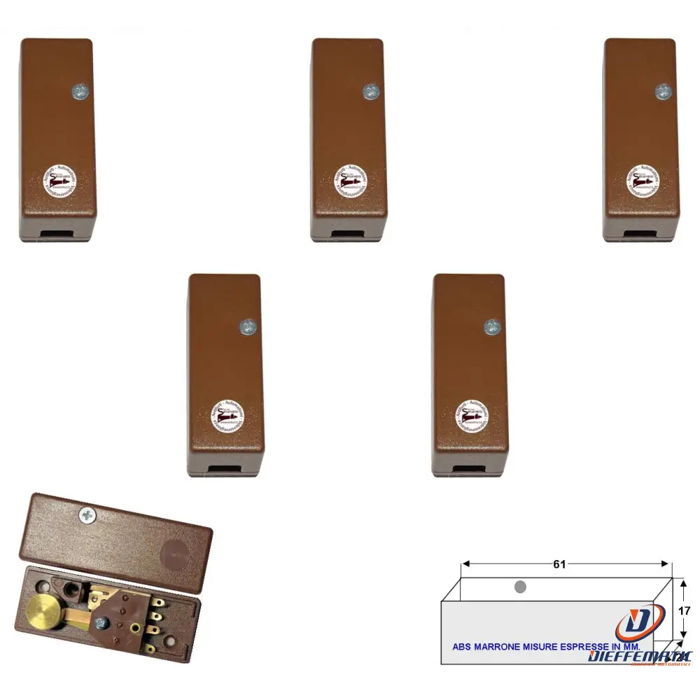 Sensore di Scasso Rileva le Vibrazioni Continue 5 Pezzi Per Antifurto Via Filo Di Inferriate Porte Vetrate Con Martelletto Regolabile Segnale Di Allarme NC Tamper Contenitore Adesivo ABS Marrone IP30