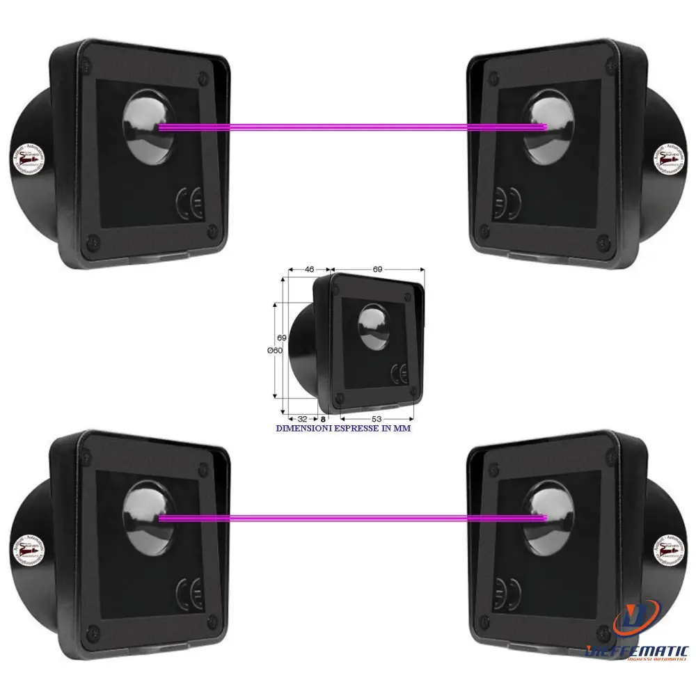 Coppia Fotocellule Incasso 2 Coppie Sicurezza e Controllo Automatismo Cancello TX e RX Portata 20 Metri Montaggio a Parete Oppure Palina Alimentazione 12/24 Vac