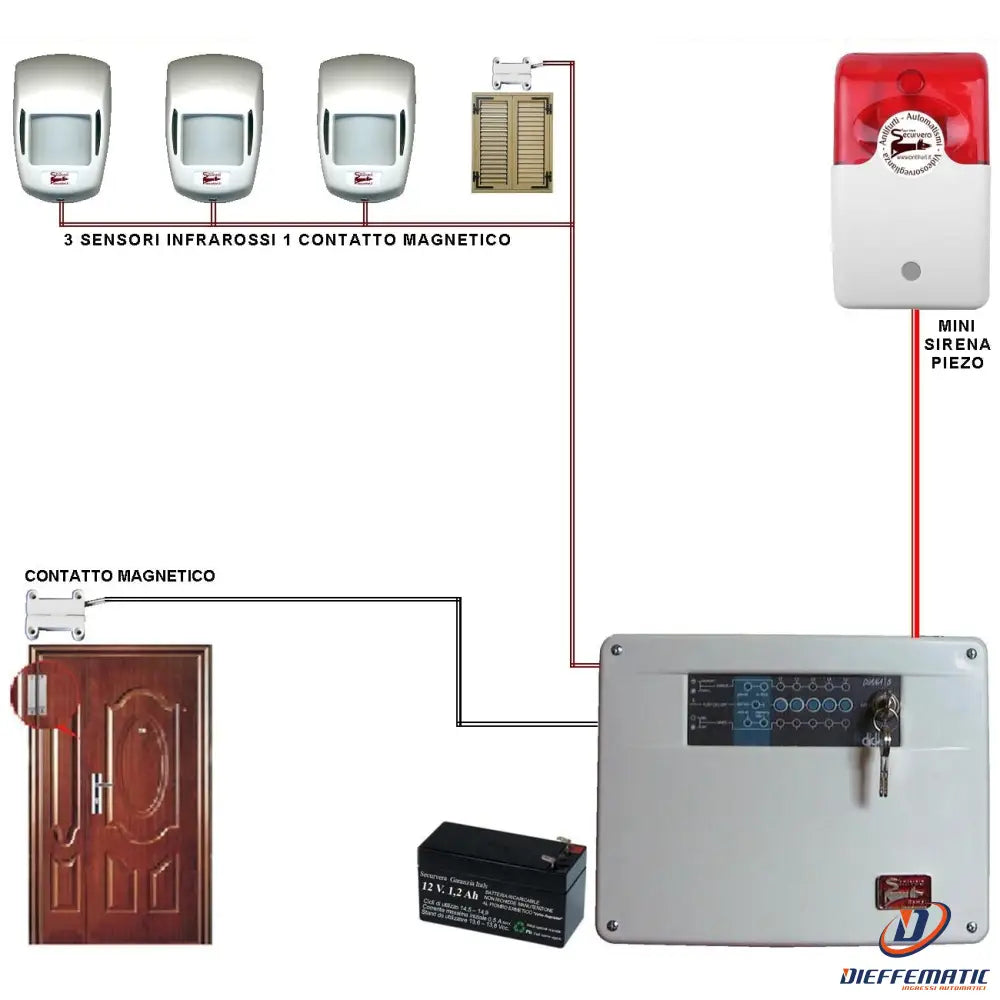 SV-DTF Doppia tecnologia da interno ed esterno protetto a tenda. Portata: 12 metri Interno, 8 metri esterno. Doppio sensore piroelettrico, che generano unico fascio infrarosso. Microonda con guida a tenda. I due sensori sono sincronizzati su un apertura di 7,5°. Regolazione della sensibilità per ogni singolo sensore. Allarme, antimascheramento e tamper uscite separate a relè. Funzioni: infrarosso, microonda, allarme, segnalate da singoli led disattivabili. Adatta per la protezione degli infissi tra persiana e finestra, balconi protetti da sottotetti, evitare l'installazione con il sole diretto frontale, antimeridiano e pomeridiano. Installazione a parete altezza 2,10 metri dal pavimento. Contenitore ABS colore crema chiaro. Protezione IP 54.Dimensioni H115XL45XP40 mm. Peso 90 gr. Prodotto costruito nello stabilimento della Securvera Roma. Garantito a norma di Legge contro difetti e vizi di fabbrica.
