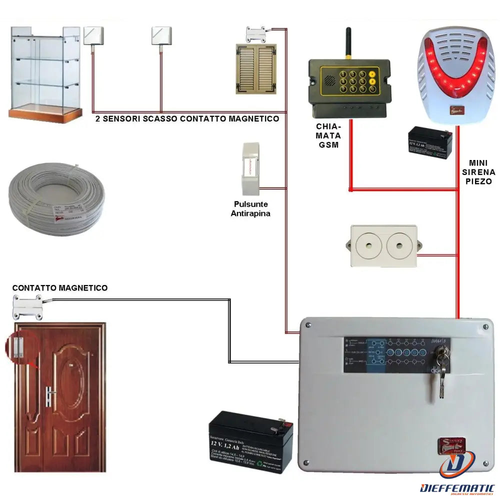 Kit Allarme Poly 5 Zone Filo Completo Con Mini Sirena Securvera Sk-Capdmvsmse
