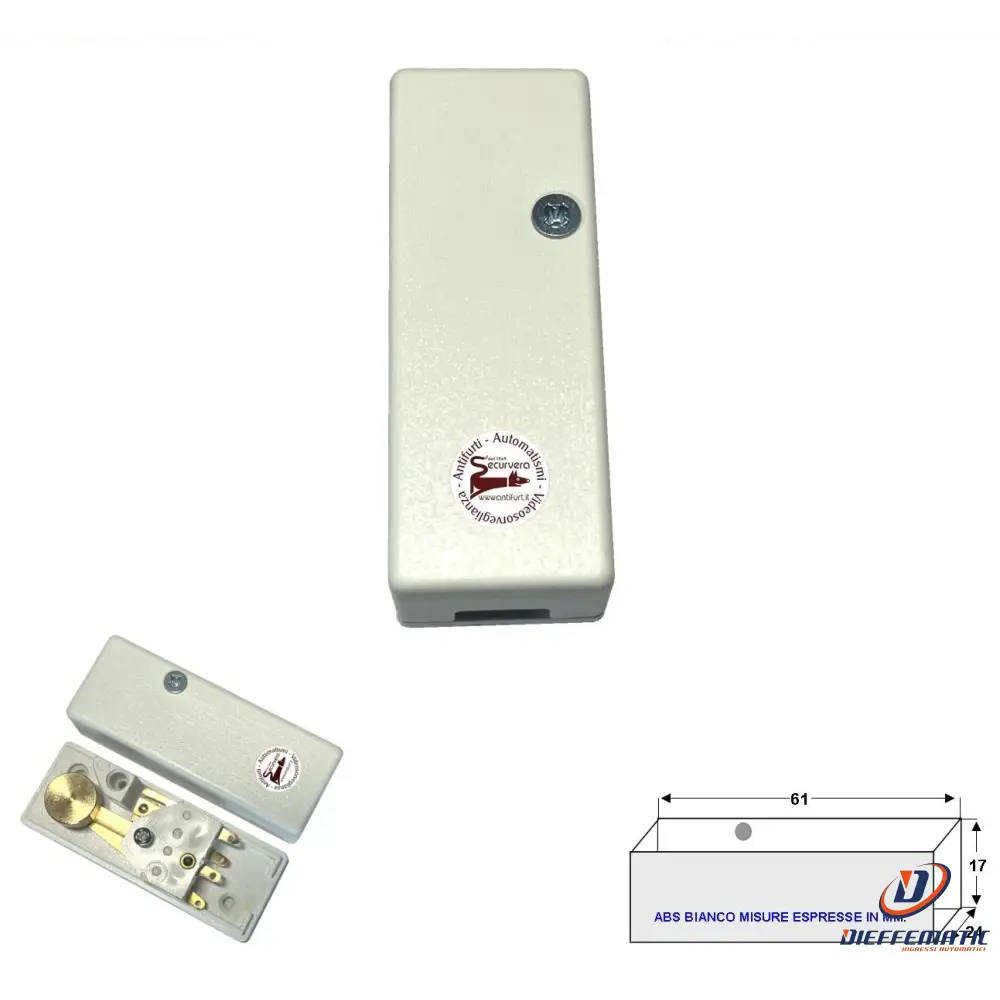 Sensore Adesivo Rileva le Vibrazioni Continue lo Scasso Collegamento a Filo Antifurto Porte Vetrate Regolazione Meccanica del Martelletto Contatto Allarme NC Tamper Contenitore Adesivo ABS Bianco IP30